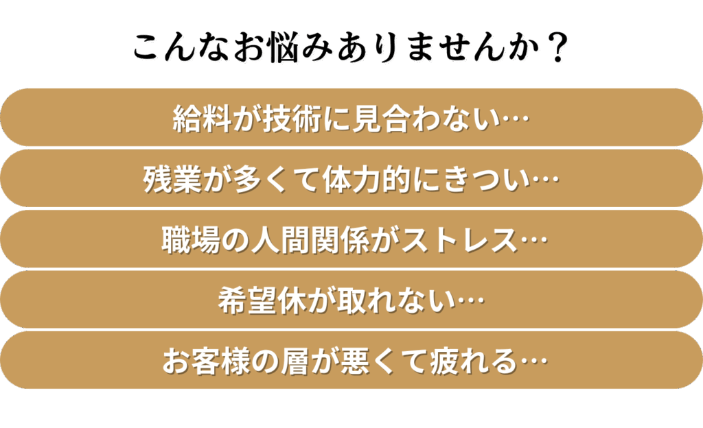 A. 当サロンは人間関係の良さが自慢です。チームワークを大切にしており、新しいメンバーも温かく迎え入れます。