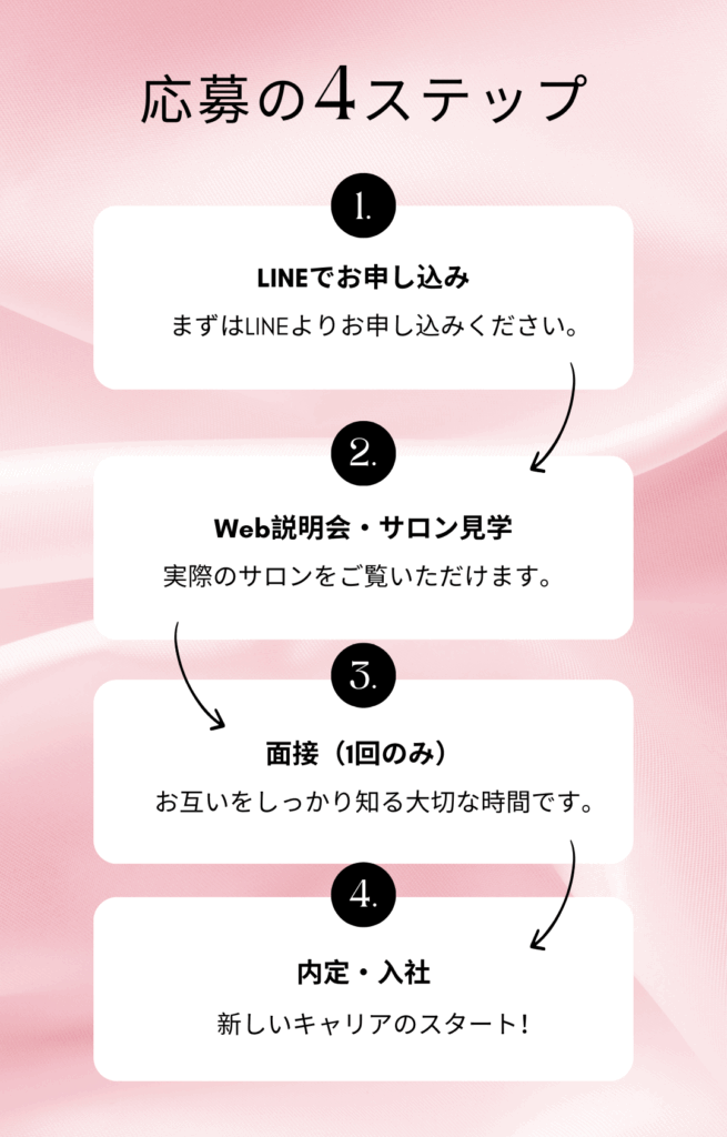 - 研修期間は1〜2ヶ月を目安に、サロン営業時間内で効率よく学べます。